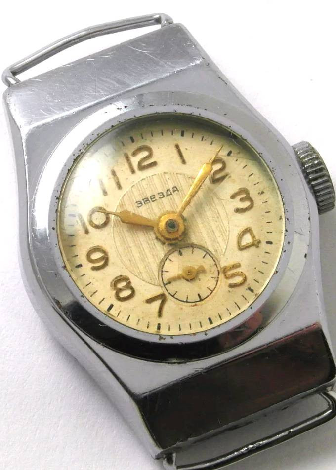 This example was made by the First Moscow Watch factory Based on French LIP Movement Name chosen by Stalin to celebrate end of WW II May take a "love tap" to run |